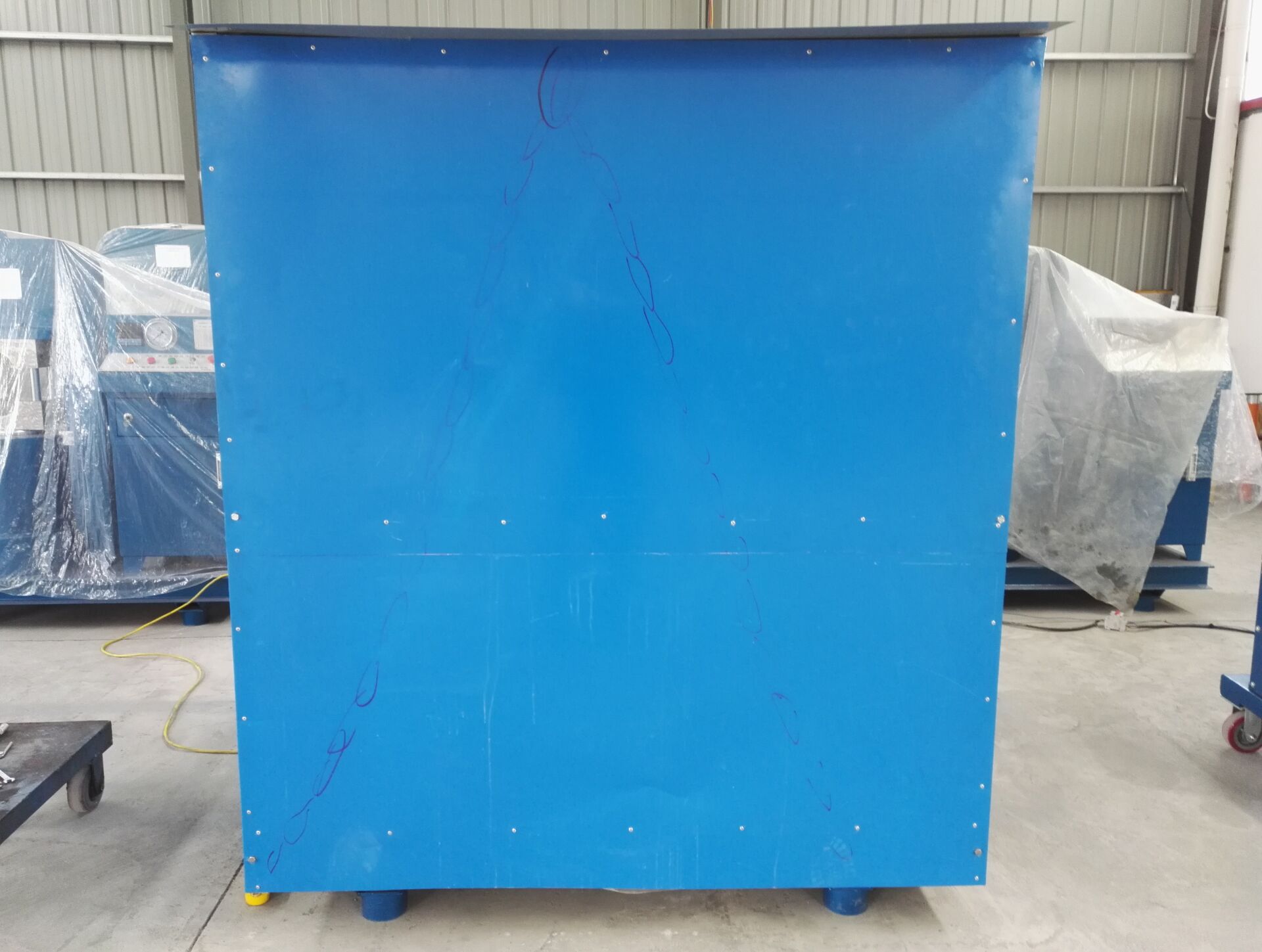 壓套機(jī)是比較重的設(shè)備,對木箱承重是個考驗,而且在運輸過程中可能會有碰撞,使客戶收到的設(shè)備有缺陷,而我們泰誠液壓出口的鋼絲繩壓套機(jī)都是使用角鐵框架焊接,再蒙上鐵皮,承重上沒有任何問題,也防止在運輸上碰撞。